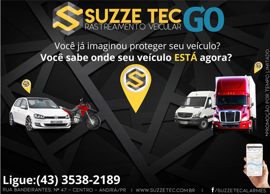 SUZZETECGO o rastreamento que você, sua família, empresa ou setor público ganham mais segurança na cidade ou na estrada. Através da nossa tecnologia é possível: saber onde está o veículo monitorado online, visualizar distâncias e trajetos percorridos, criar cercas virtuais entre diversas outras funcionalidades, possui uma ferramenta exclusiva para atender a Lei nº 13.103/2015, para o controle da jornada de trabalho do motorista. A ferramenta é a única do mercado que atende 100% todas as exigências da lei, pois foi desenvolvida baseada em seus artigos. Integração com a Agência Nacional de Transportes Terrestres (ANTT). tudo alinhado a um Rastreador de qualidade com Certificação pela ANATEL